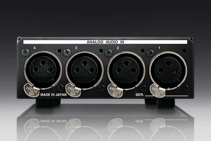 - ● バランスアナログ音声4系統入力およびAES/EBUデジタル音声信号2系統入力に対応