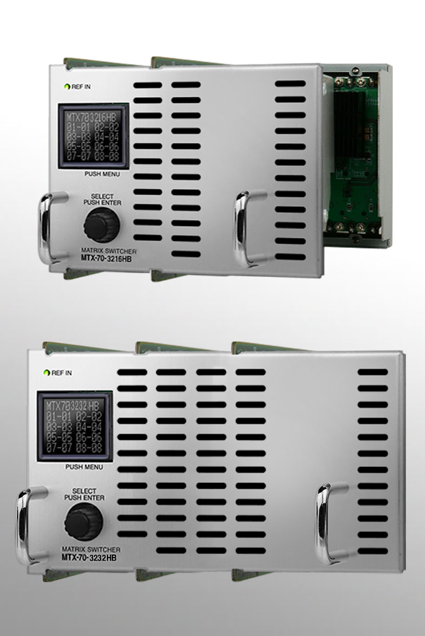 Vbusモジュールの3G/HD/SD-SDI、DVB-ASI対応のマトリックススイッチャーです。入出力にMicro BNCコネクターを採用した省スペースモデル。32×32は4スロット、32×16は3スロットです。UDP通信によるリモート制御に対応。